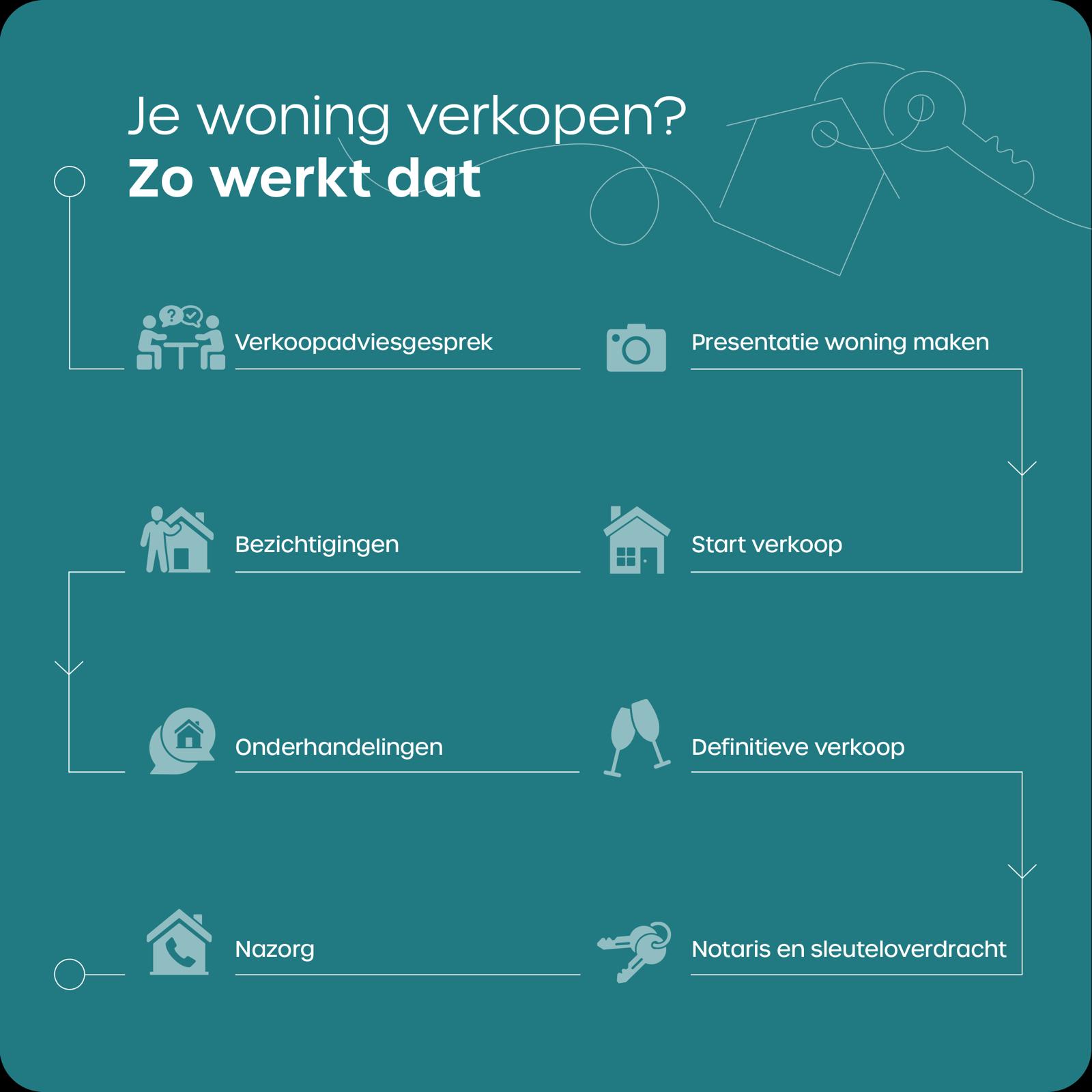 Besluit je de woning te verkopen, dan zorgen wij voor een professionele presentatie, o.a. voorzien van een foto-/ videoreportage en plattegronden. Van de bezichtigingen, tot onderhandelingen en juridische afhandeling bij de notaris. Wij begeleiden het gehele traject.
